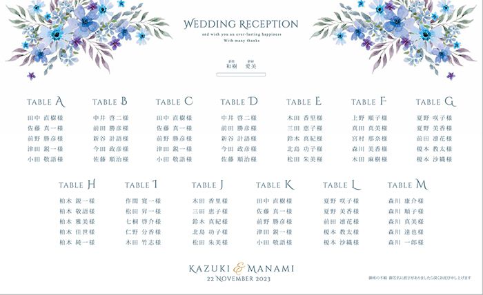 結婚式席次表が高品質で安い274種類 席札無料 ウェブディング